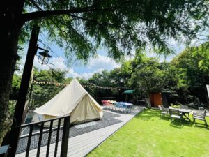 提供包棟服務,含帳棚總計6房,最多可入住30人,使用全套櫥具、視聽設備、室外陽台、草地餐桌椅及烤肉設施,是家族、朋友、同學聚會最佳場所。